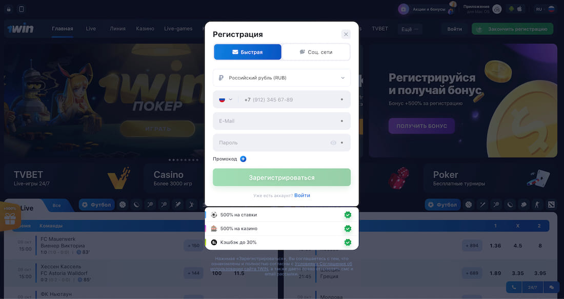 Регистрация на сайте 1win является обязательным условием для получения доступа к полному функционалу платформы. Ее можно пройти разными способами: по номеру телефона, с помощью электронной почты или социальных сетей.